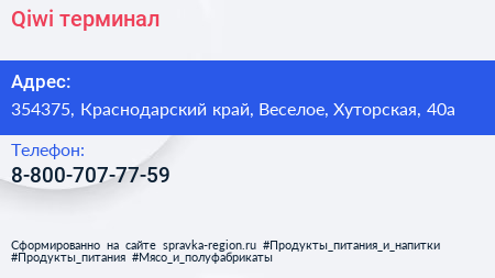 Qiwi, терминал по адресу 354375, Краснодарский край, Веселое, Хуторская, 40а в дальнейшем Организация, размещена в следующих категориях: