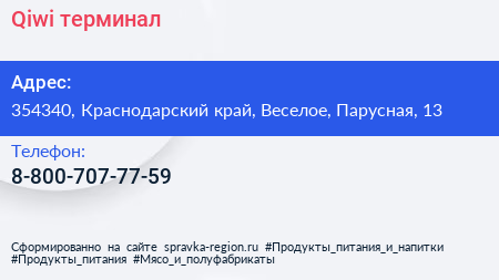 Qiwi, терминал по адресу 354340, Краснодарский край, Веселое, Парусная, 13 в дальнейшем Организация, размещена в следующих категориях: