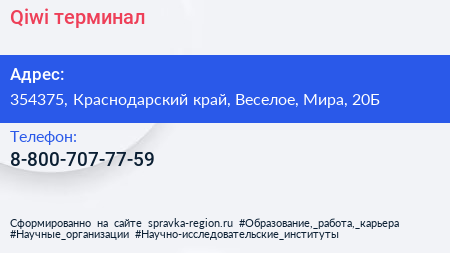 Qiwi, терминал по адресу 354375, Краснодарский край, Веселое, Мира, 20Б в дальнейшем Организация, размещена в следующих категориях: