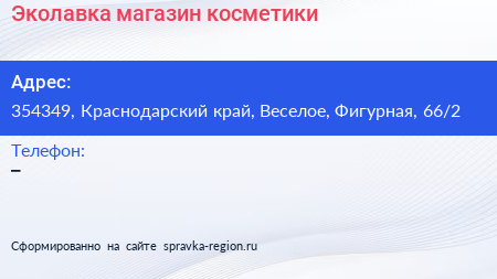 Эколавка, магазин косметики по адресу 354349, Краснодарский край, Веселое, Фигурная, 66/2 в дальнейшем Организация, размещена в следующих категориях: