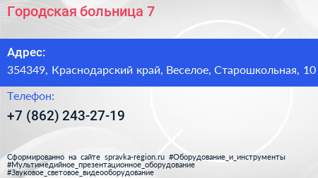 Городская больница №7 по адресу 354349, Краснодарский край, Веселое, Старошкольная, 10 в дальнейшем Организация, размещена в следующих категориях: