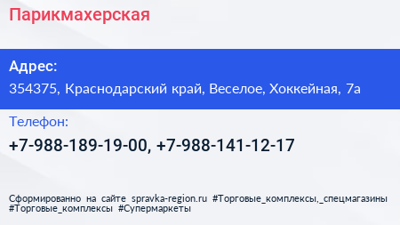 Парикмахерская по адресу 354375, Краснодарский край, Веселое, Хоккейная, 7а в дальнейшем Организация, размещена в следующих категориях: