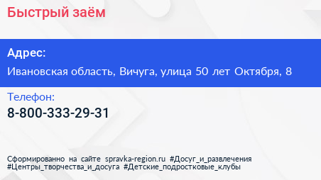 Быстрый заём по адресу Ивановская область, Вичуга, улица 50 лет Октября, 8 в дальнейшем Организация, размещена в следующих категориях: