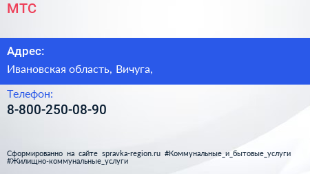 МТС по адресу Ивановская область, Вичуга, в дальнейшем Организация, размещена в следующих категориях: