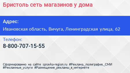 Бристоль, сеть магазинов у дома по адресу Ивановская область, Вичуга, Ленинградская улица, 62 в дальнейшем Организация, размещена в следующих категориях: