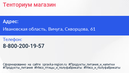 Тенториум, магазин по адресу Ивановская область, Вичуга, Скворцова, 61 в дальнейшем Организация, размещена в следующих категориях:
