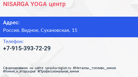 NISARGA YOGA, центр по адресу 15, Сухановская улица, Жилой комплекс «Государев дом», Лопатино, Ленинский городской округ, Московская область, Центральный федеральный округ, 142710, Россия в дальнейшем Организация, размещена в следующих категориях:
