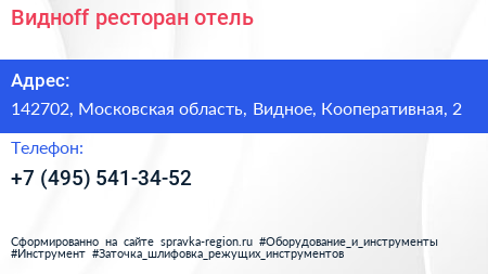 Виднoff, ресторан-отель по адресу 142702, Московская область, Видное, Кооперативная, 2 в дальнейшем Организация, размещена в следующих категориях:
