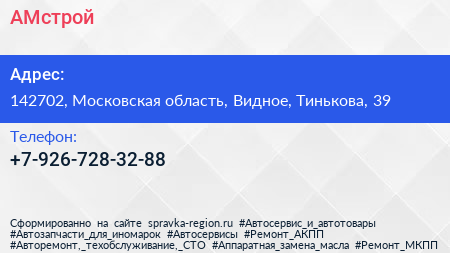 АМстрой по адресу 142702, Московская область, Видное, Тинькова, 39 в дальнейшем Организация, размещена в следующих категориях: