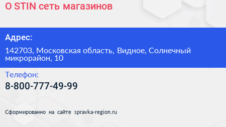 O`STIN, сеть магазинов по адресу 142703, Московская область, Видное, Солнечный микрорайон, 10 в дальнейшем Организация, размещена в следующих категориях: