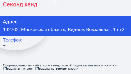 Секонд-хенд по адресу 142702, Московская область, Видное, Вокзальная, 1 ст2 в дальнейшем Организация, размещена в следующих категориях: