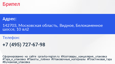 Брипел по адресу 142703, Московская область, Видное, Белокаменное шоссе, 10 вл2 в дальнейшем Организация, размещена в следующих категориях: