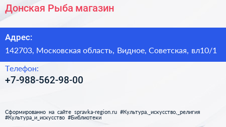 Донская Рыба, магазин по адресу 142703, Московская область, Видное, Советская, вл10/1 в дальнейшем Организация, размещена в следующих категориях: