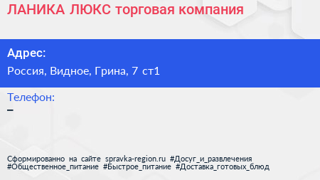 ЛАНИКА ЛЮКС, торговая компания по адресу Всероссийский НИИ лекарственных и ароматических растений (ВИЛАР), Симферопольское шоссе, район Северное Бутово, Москва, Центральный федеральный округ, 117405, Россия в дальнейшем Организация, размещена в следующих категориях: