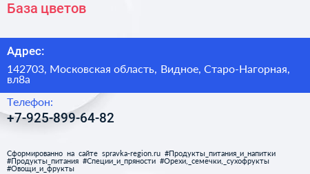 База цветов по адресу 142703, Московская область, Видное, Старо-Нагорная, вл8а в дальнейшем Организация, размещена в следующих категориях: