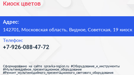 Киоск цветов по адресу 142701, Московская область, Видное, Советская, 19 киоск в дальнейшем Организация, размещена в следующих категориях:
