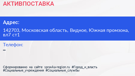 АКТИВПОСТАВКА по адресу 142703, Московская область, Видное, Южная промзона, вл7 ст1 в дальнейшем Организация, размещена в следующих категориях: