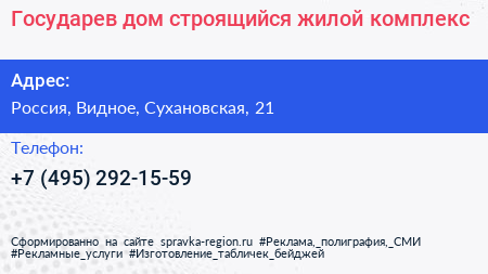 Государев дом, строящийся жилой комплекс по адресу 21, Сухановская улица, Жилой комплекс «Государев дом», Лопатино, Ленинский городской округ, Московская область, Центральный федеральный округ, 142710, Россия в дальнейшем Организация, размещена в следующих категориях: