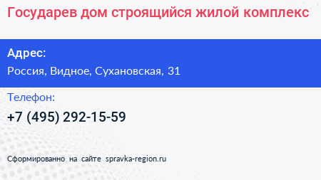 Государев дом, строящийся жилой комплекс по адресу 31, Сухановская улица, Жилой комплекс «Государев дом», Лопатино, Ленинский городской округ, Московская область, Центральный федеральный округ, 142710, Россия в дальнейшем Организация, размещена в следующих категориях: