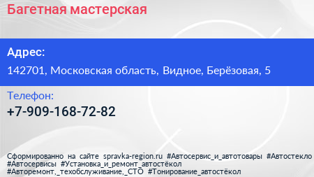 Багетная мастерская по адресу 142701, Московская область, Видное, Берёзовая, 5 в дальнейшем Организация, размещена в следующих категориях: