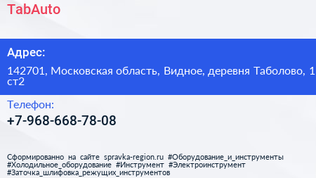TabAuto по адресу 142701, Московская область, Видное, деревня Таболово, 1 ст2 в дальнейшем Организация, размещена в следующих категориях:
