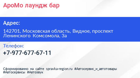 АроМо, лаундж-бар по адресу 142701, Московская область, Видное, проспект Ленинского Комсомола, 3а в дальнейшем Организация, размещена в следующих категориях: