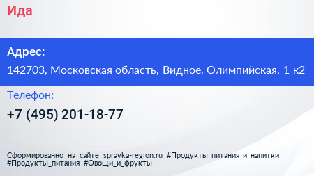 Ида по адресу 142703, Московская область, Видное, Олимпийская, 1 к2 в дальнейшем Организация, размещена в следующих категориях: