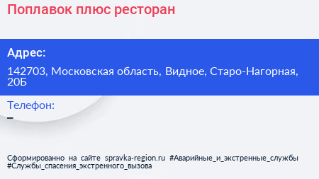 Поплавок плюс, ресторан по адресу 142703, Московская область, Видное, Старо-Нагорная, 20Б в дальнейшем Организация, размещена в следующих категориях: