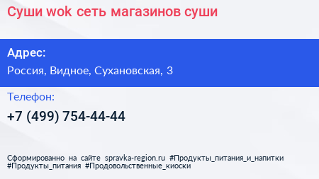 Суши wok, сеть магазинов суши по адресу 3, Сухановская улица, Жилой комплекс «Государев дом», Лопатино, Ленинский городской округ, Московская область, Центральный федеральный округ, 142710, Россия в дальнейшем Организация, размещена в следующих категориях: