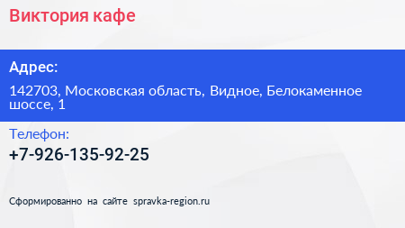 Виктория, кафе по адресу 142703, Московская область, Видное, Белокаменное шоссе, 1 в дальнейшем Организация, размещена в следующих категориях: