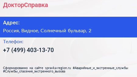 ДокторСправка по адресу 2, Солнечный бульвар, Жилой комплекс «Государев дом», Лопатино, Ленинский городской округ, Московская область, Центральный федеральный округ, 142710, Россия в дальнейшем Организация, размещена в следующих категориях: