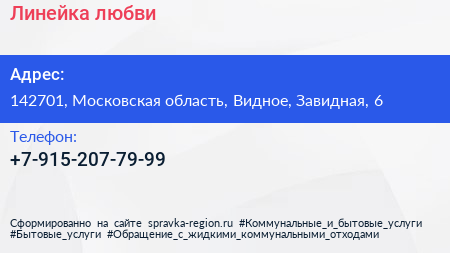 Линейка любви по адресу 142701, Московская область, Видное, Завидная, 6 в дальнейшем Организация, размещена в следующих категориях: