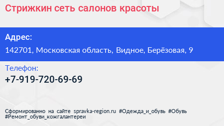 Стрижкин, сеть салонов красоты по адресу 142701, Московская область, Видное, Берёзовая, 9 в дальнейшем Организация, размещена в следующих категориях: