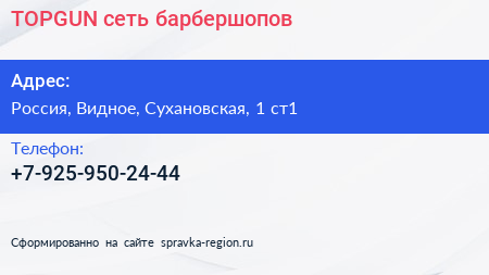 TOPGUN, сеть барбершопов по адресу Аструм, 1 с1, Сухановская улица, Жилой комплекс «Государев дом», Лопатино, Ленинский городской округ, Московская область, Центральный федеральный округ, 142710, Россия в дальнейшем Организация, размещена в следующих категориях: