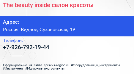 The beauty inside, салон красоты по адресу салон красоты, 19, Сухановская улица, Жилой комплекс «Государев дом», Лопатино, Ленинский городской округ, Московская область, Центральный федеральный округ, 142710, Россия в дальнейшем Организация, размещена в следующих категориях:
