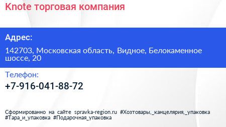 Knote, торговая компания по адресу 142703, Московская область, Видное, Белокаменное шоссе, 20 в дальнейшем Организация, размещена в следующих категориях: