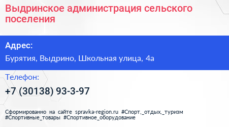 Выдринское, администрация сельского поселения по адресу Бурятия, Выдрино, Школьная улица, 4а в дальнейшем Организация, размещена в следующих категориях: