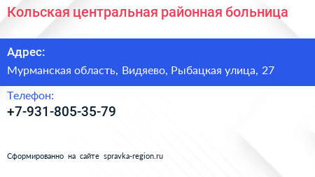 Кольская центральная районная больница по адресу Мурманская область, Видяево, Рыбацкая улица, 27 в дальнейшем Организация, размещена в следующих категориях: