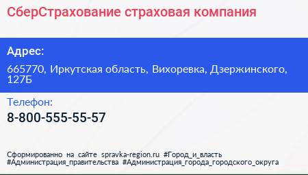 СберСтрахование, страховая компания по адресу 665770, Иркутская область, Вихоревка, Дзержинского, 127Б в дальнейшем Организация, размещена в следующих категориях: