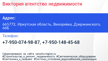 Виктория, агентство недвижимости по адресу 665772, Иркутская область, Вихоревка, Дзержинского, 66Б в дальнейшем Организация, размещена в следующих категориях:
