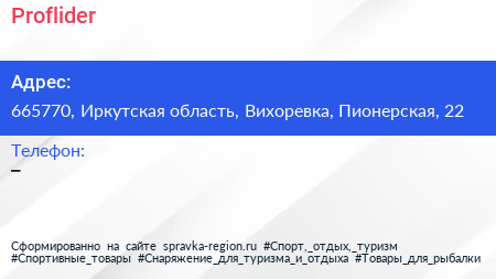 Proflider по адресу 665770, Иркутская область, Вихоревка, Пионерская, 22 в дальнейшем Организация, размещена в следующих категориях: