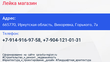 Лейка, магазин по адресу 665770, Иркутская область, Вихоревка, Горького, 7а в дальнейшем Организация, размещена в следующих категориях: