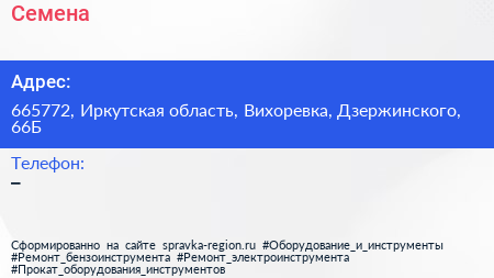 Семена по адресу 665772, Иркутская область, Вихоревка, Дзержинского, 66Б в дальнейшем Организация, размещена в следующих категориях:
