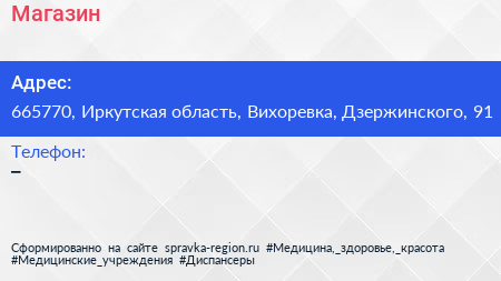 Магазин по адресу 665770, Иркутская область, Вихоревка, Дзержинского, 91 в дальнейшем Организация, размещена в следующих категориях:
