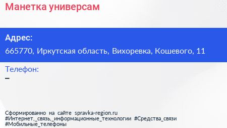 Адрес: Иркутская область, Вихоревка, Ленина, 9а/4