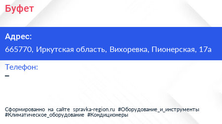 Буфет по адресу 665770, Иркутская область, Вихоревка, Пионерская, 17а в дальнейшем Организация, размещена в следующих категориях: