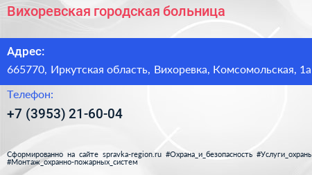 Вихоревская городская больница по адресу 665770, Иркутская область, Вихоревка, Комсомольская, 1а в дальнейшем Организация, размещена в следующих категориях: