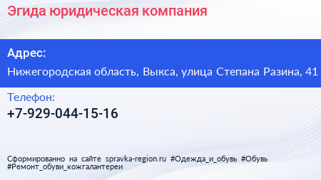 Эгида, юридическая компания по адресу Нижегородская область, Выкса, улица Степана Разина, 41 в дальнейшем Организация, размещена в следующих категориях: