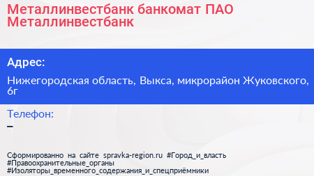 Металлинвестбанк, банкомат, ПАО Металлинвестбанк по адресу Нижегородская область, Выкса, микрорайон Жуковского, 6г в дальнейшем Организация, размещена в следующих категориях: