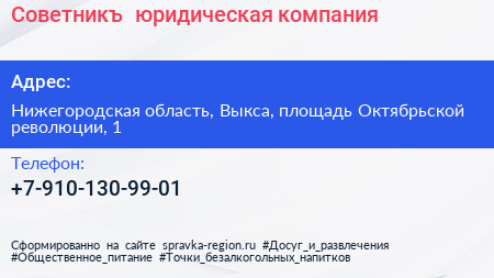 Советникъ+, юридическая компания по адресу Нижегородская область, Выкса, площадь Октябрьской революции, 1 в дальнейшем Организация, размещена в следующих категориях: